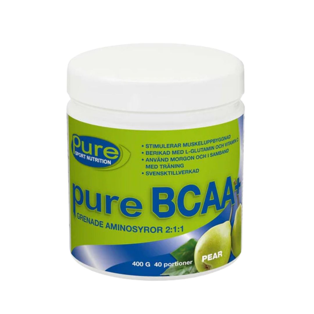 pure BCAA+ är ett kosttillskott bestående av de tre grenade aminosyrorna L-Leucin, L-Isoleucin och L-Valin. BCAA ingår i protein och har till uppgift att bromsa nedbrytningen av musklerna och istället påbörja en uppbyggande fas.