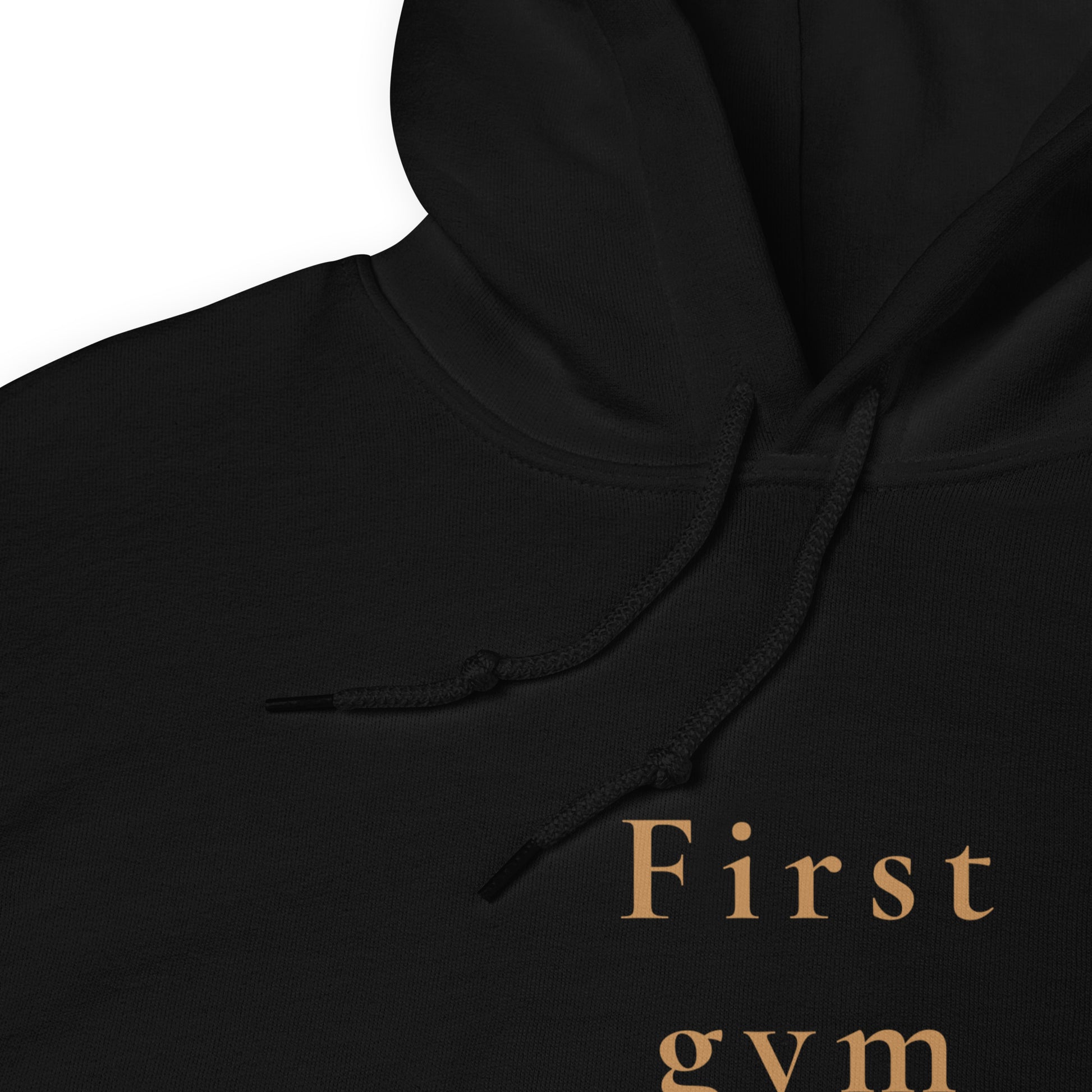 FIRST GYM THEN WINE HOODIE SVART MED GULD